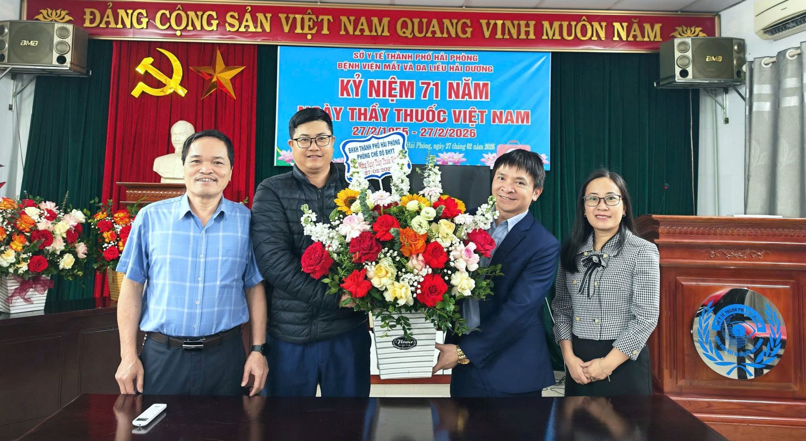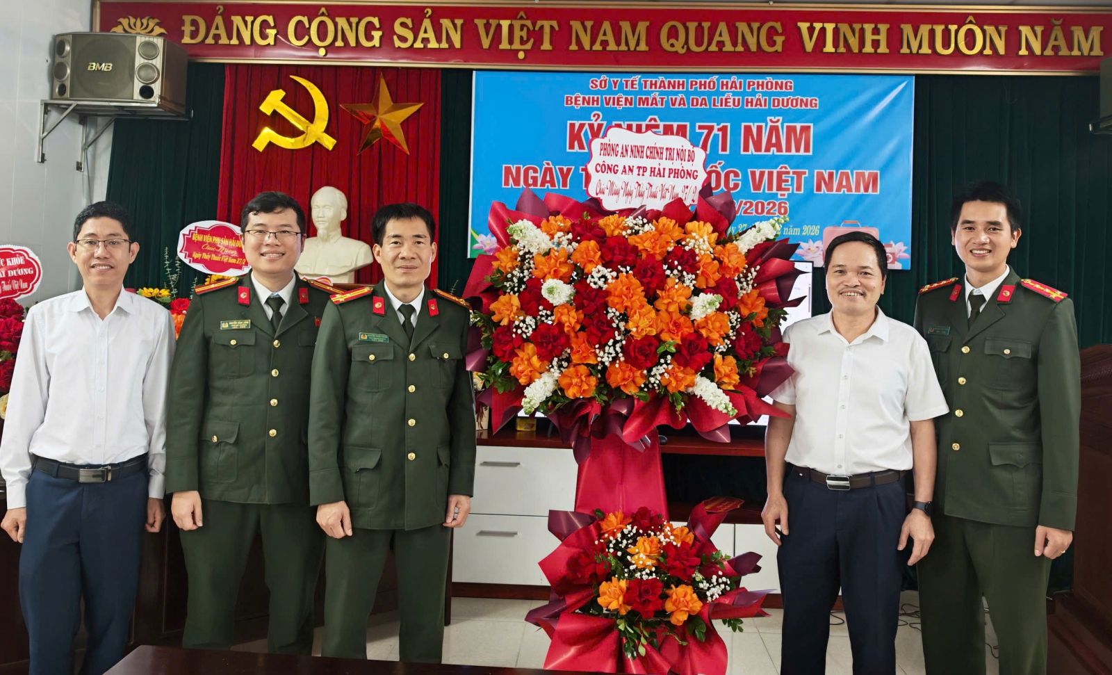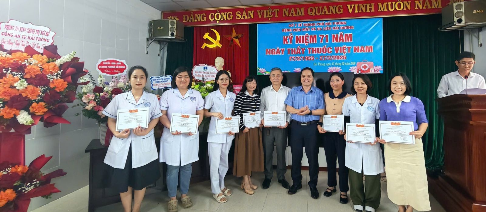 Hoà trong không khí vui tươi của buổi lễ, các đơn vị bạn và đại diện cơ quan Bảo hiểm xã hội Thành phố Hải Phòng, Phòng an ninh chính trị nội bộ - Công an Thành phố Hải Phòng có những bó hoa tươi thắm tri ân ngày thầy thuốc Việt Năm tới đơn vị: