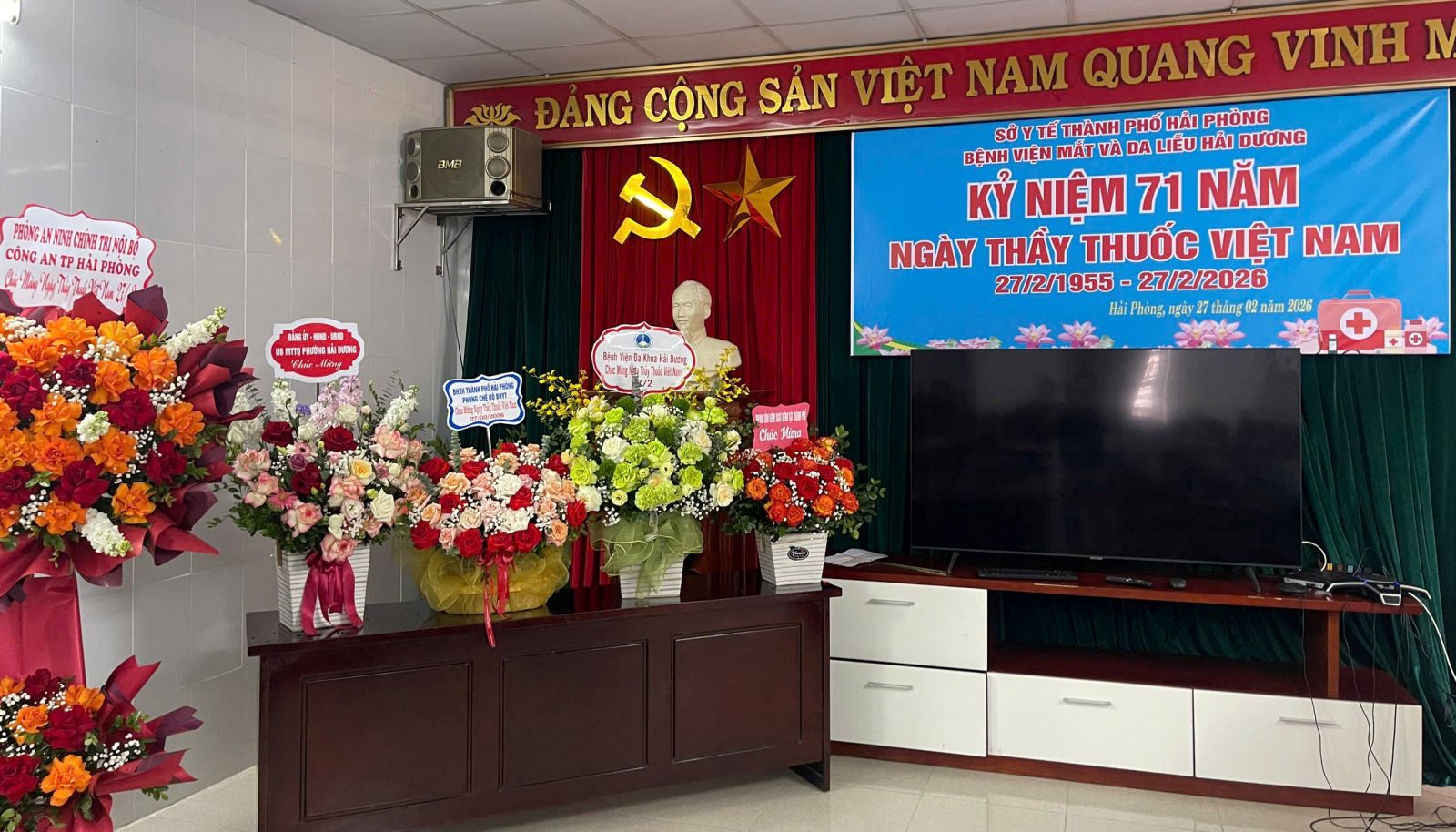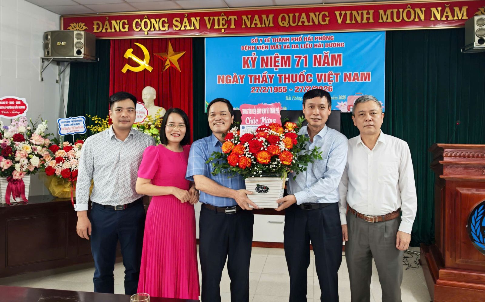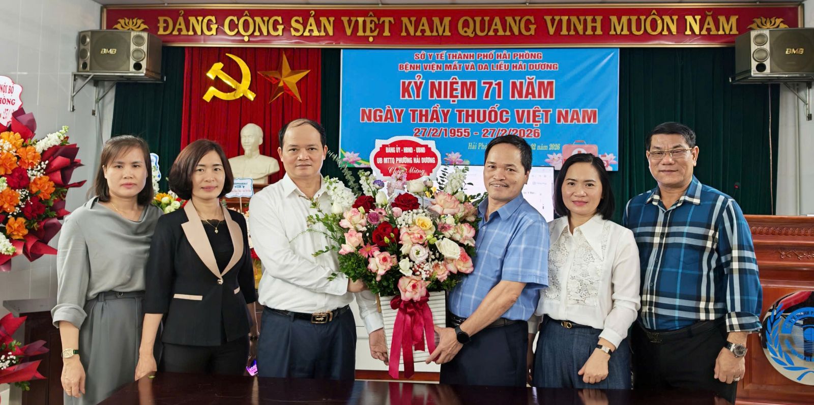 Hoà trong không khí vui tươi của buổi lễ, các đơn vị bạn và đại diện cơ quan Bảo hiểm xã hội Thành phố Hải Phòng, Phòng an ninh chính trị nội bộ - Công an Thành phố Hải Phòng có những bó hoa tươi thắm tri ân ngày thầy thuốc Việt Năm tới đơn vị:
