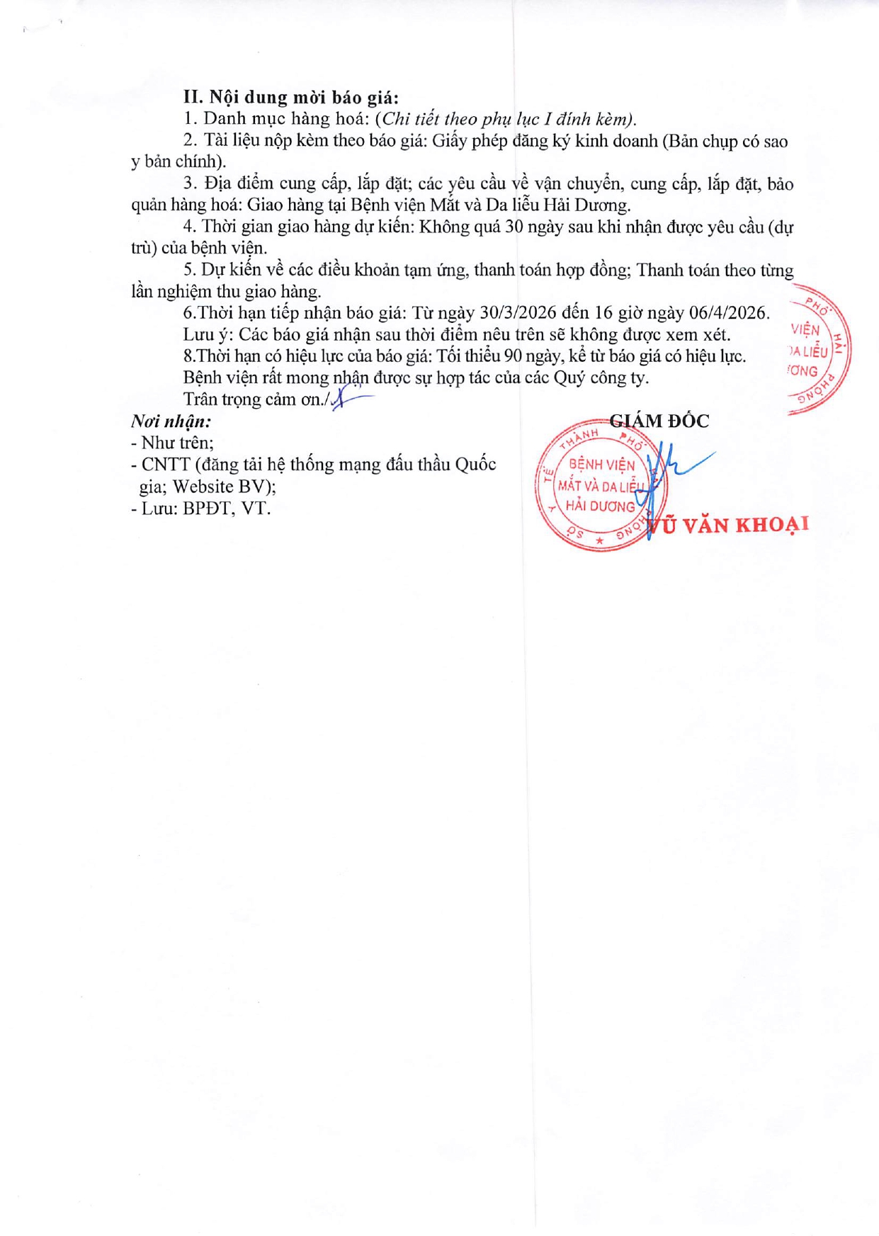 Cập nhật lúc: 16:37 - 30/03/2026 THƯ MỜI BÁO GIÁ MUA SẮM HẠ TẦNG CÔNG NGHỆ THÔNG TIN TRIỂN KHAI HỒ SƠ BỆNH ÁN ĐIỆN TỬ CỦA BỆNH VIỆN MẮT VÀ DA LIỄU HẢI DƯƠNG | Giới thiệu THƯ MỜI CHÀO GIÁ MUA SẮM HẠ TẦNG CÔNG NGHỆ THÔNG TIN.pdf