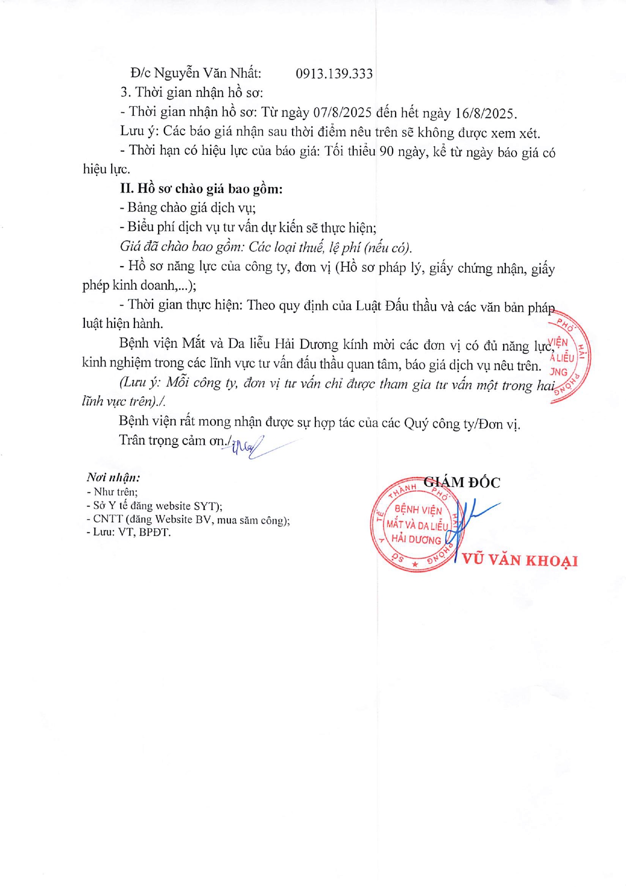 THƯ MỜI CHÀO GIÁ CUNG CẤP DỊCH VỤ TƯ VẤN VÀ XÂY DỰNG HỒ SƠ ĐỀ XUẤT CẤP ĐỘ AN TOÀN HỆ THỐNG THÔNG TIN THEO NGHỊ ĐỊNH SỐ 85/2016/NĐ-CP benhvienmatvadalieu 24/10/2025 Đọc thêm